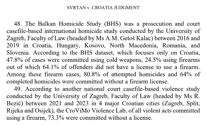 In the case of Svrtan v. Croatia (application no. 57507/19) the European Court of Human Rights (ECtHR) held, unanimously, that there had been a violation of Article 2 (right to life) of the European Convention on Human Rights (ECHR). In doing so the ECtHR, whilst referring to “other relevant materials” in section IV of its judgement, strongly relied on empirical research findings about (attempted) homicides committed using illegally owned firearms. Both the Balkan Homicide Study’s and the CroViMo Violence Lab’s scientific findings are cited in the judgement.
